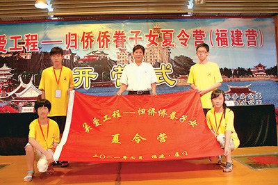 福建省侨办负责人为“关爱工程——归侨侨眷子女夏令营”活动授旗。