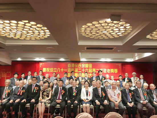 广东侨网讯 4月14日晚,香港余氏宗亲会在香港名都酒楼举行成立81周年暨第26届敬老奖学联欢大会。我市人大常委会副主任谭钜安、副市长张慧琳,以及统战、侨务、教育等单位领导出席活动。