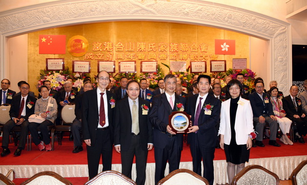 旅港台山陈氏家族联合会会长陈中伟在致辞中,与大家回顾了本会前贤艰苦创业的历史,他表示将会与同仁们再接再厉,团结奋斗,弘扬祖德,继续努力共同推进会务,为香港社会和谐及家乡台山发展尽一份力量。(白桦)