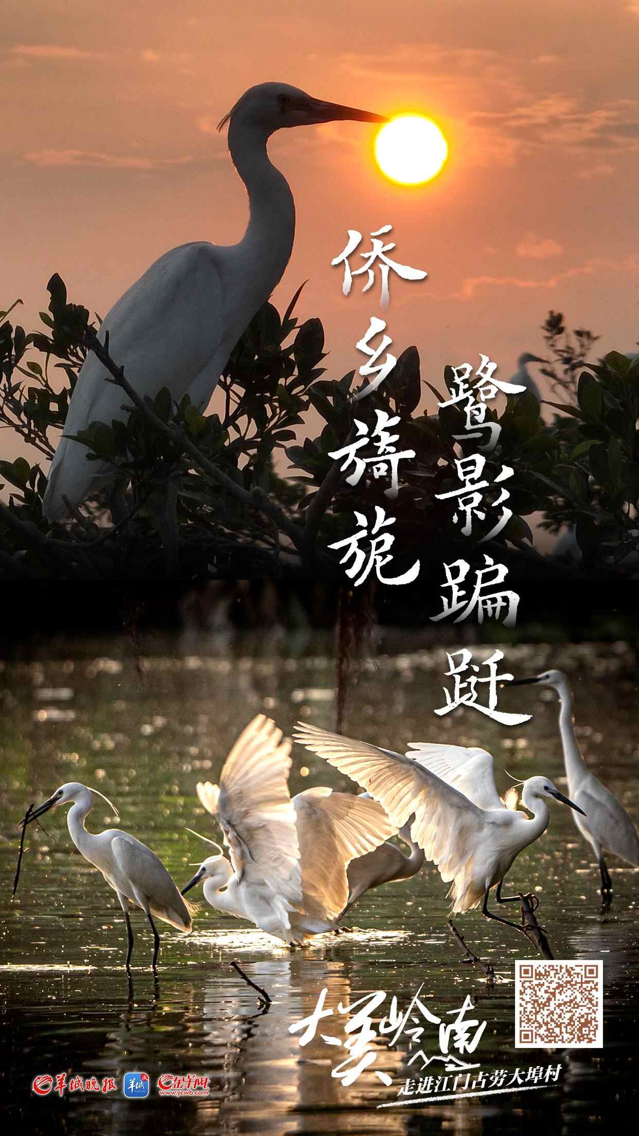 “两个黄鹂鸣翠柳,一行白鹭上青天”。于江门鹤山之隅,隐匿着古劳大埠村这方桃源胜境。羊城晚报《大美岭南》第110站走进古劳大埠,此间天色澄蓝如碧,水色潋滟清明,田畴凝翠含烟,林树郁葱欲滴。一方秀水净土,引得白鹭纷至沓来,栖居于此,宛如寻得心灵原乡。