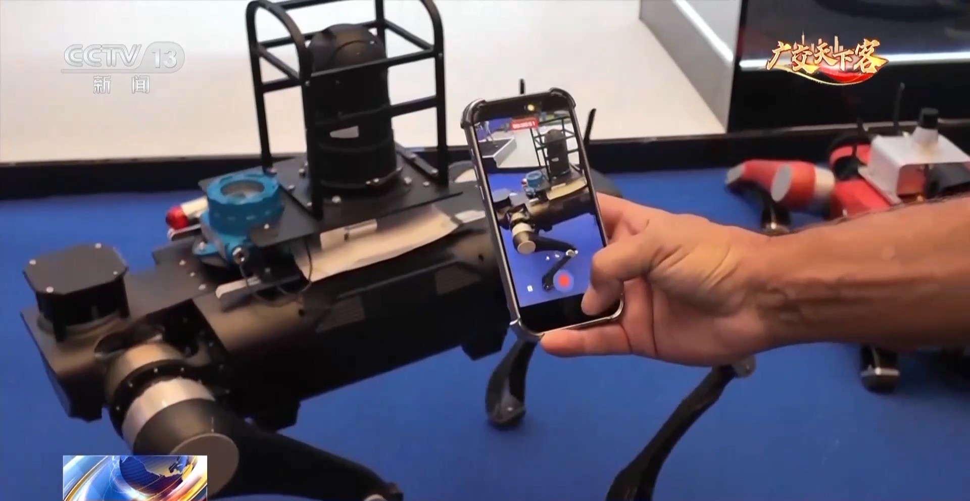 现场还有大小不一、种类繁多的机器人、机器狗,在向大家演示互动,引来人们驻足。像这只机器狗,搭载了气体传感器和高清摄像头,能帮助消防员去危险的火情环境监测,体积更大更稳定。不少外国人拿起手机录视频乃至直播。足见“中国智造”的吸引力。