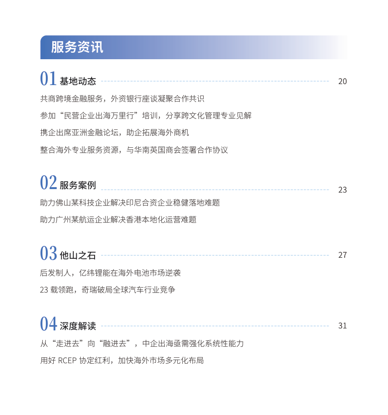 • 梳理东南亚、中东等重点区域投资机遇与风险