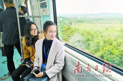 特邀市民在十四号线列车上欣赏沿途的田园风光。南方日报记者 符超军 摄
