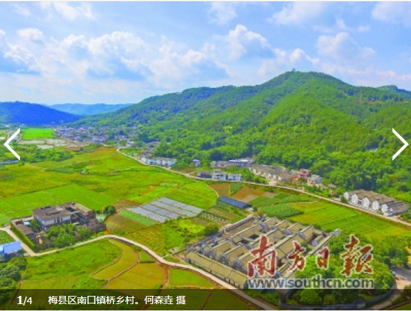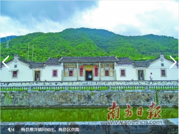 梅县,作为“世界客都”梅州的重要组成部分,现存各式客家传统民居建筑,以“围龙屋”为特色的客家民居,遍布城乡,成为地方丰富的人文资源。其中,南口桥乡村是典型代表,据介绍,其境内有大大小小116座清末民初兴建的风格各异的客家古建筑,其中围龙屋就有38座。旅游专家认为,侨乡村围龙屋数量最多、密度最大,形式最丰富,保存最完整,是目前我国客家地区发现的“最典型围屋古村落”。同时,侨乡村又被誉为“客家围屋博物馆”。