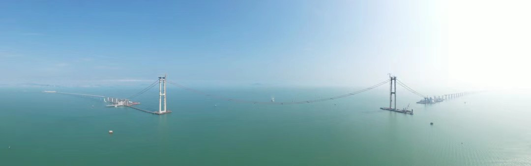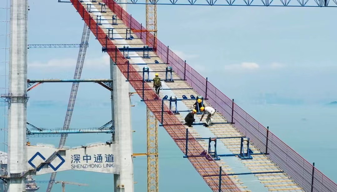 南方网讯(记者/陈伟峰 通讯员/谢子亮 张政 陈旭彬)4月22日,随着最后一块面网安装到位,深中通道伶仃洋大桥猫道实现全线贯通,标志着大桥空中施工通道搭设完成,目前正在进行猫道托滚及猫道门架安装等施工,同步筹备主缆架设所需的双线往复牵引系统相关工作,为接下来伶仃洋大桥主缆架设奠定坚实基础。