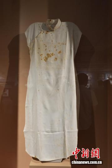 蚁光炎的血、妻子刘若英及妻妹刘素影的血都沾染在刘素影当时穿着的白色旗袍上。近日,这件血迹斑驳、颜色暗沉的“血衣”在中国华侨历史博物馆展出,无声诉说着那段悲壮的往事。