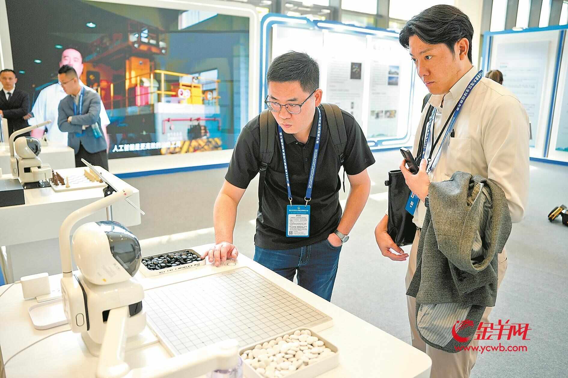 2024粤港澳大湾区全球招商大会专题产业应用场景招商活动中,参会嘉宾正在体验与AI下棋(资料图片) 羊城晚报记者 潘俊华 周巍 刘克洪 摄