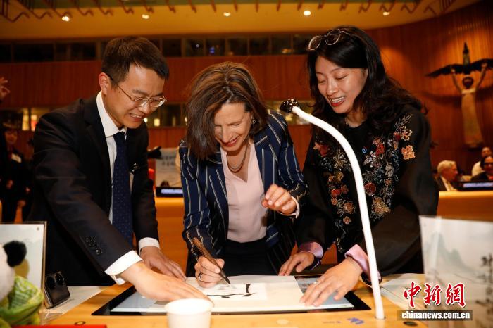 中新社联合国4月14日电 (记者 王帆 廖攀)当地时间13日,以“翰墨和鸣,华章同赋”为主题的联合国中文日庆祝活动在纽约联合国总部举行。