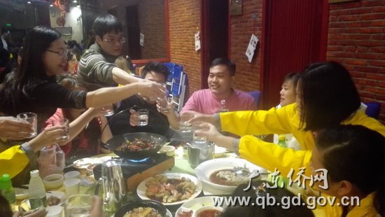 逛完花街,老师们特地邀请学员们吃团圆饭,品尝着一道道色香味俱全的特色菜,老师们又为学员们讲起了广东各地春节的特色美食和礼节传统,学员们也纷纷分享所在国的春节传统,热闹的饭桌欢声笑语不绝。新春花市行引领在中国求学的异国华裔青年们亲身体悟了岭南传统民俗,温暖了他们思乡的心,也为他们开启了新年的新篇章。(文、图:王晓云)