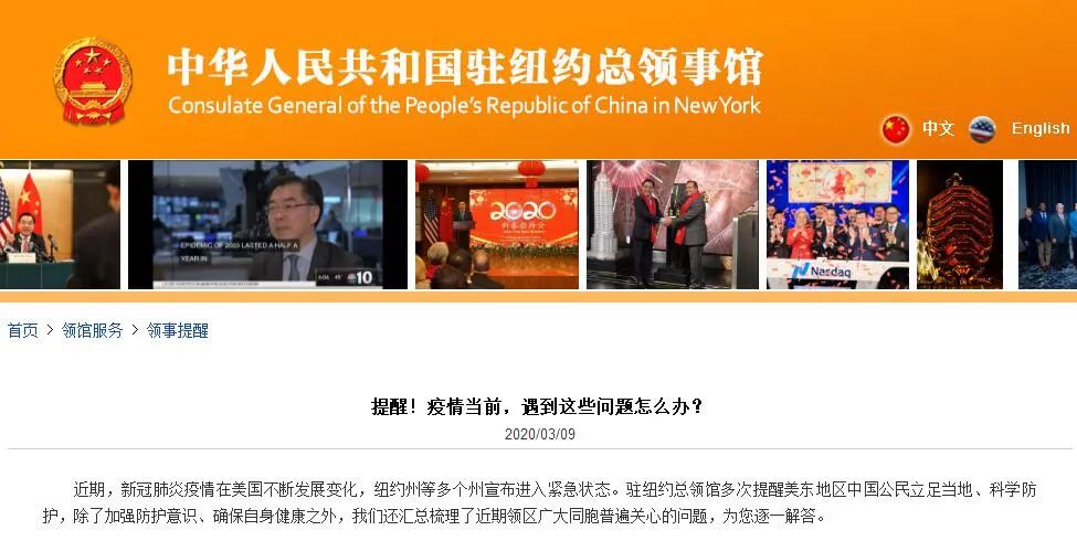 中国驻纽约总领事馆网站截图